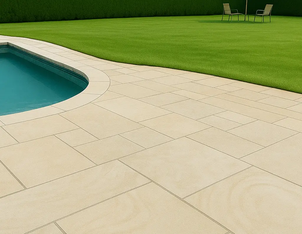 A fine-textured surface achieved by high-pressure blasting, giving the stone a clean, grainy look with excellent slip resistance and a cool, contemporary feel