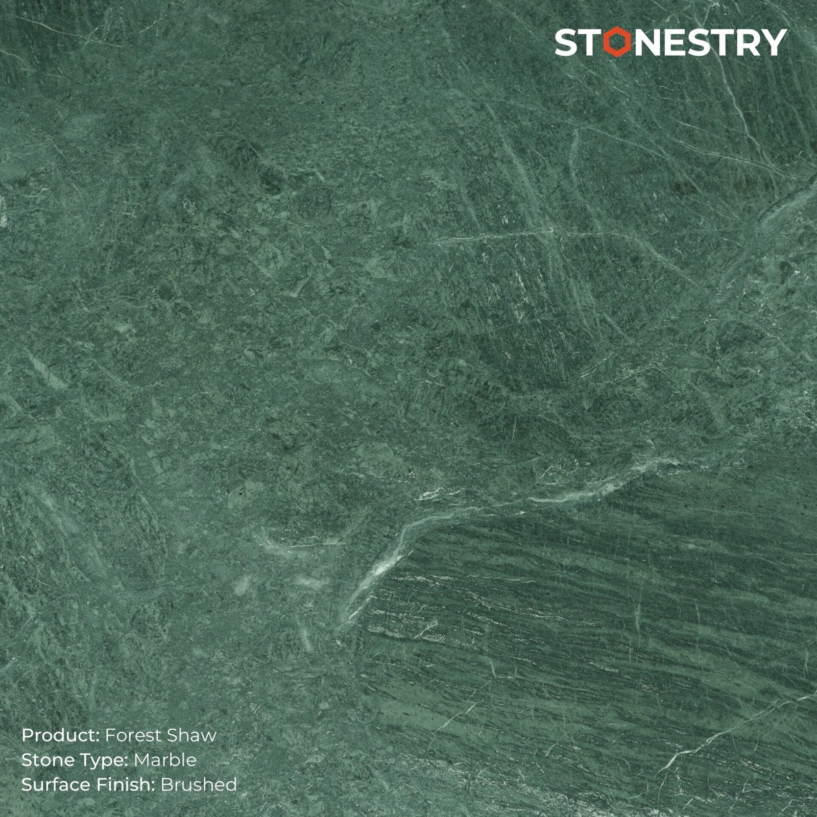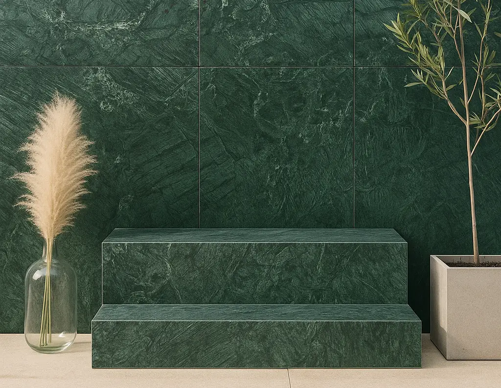 Forest Shaw marble features deep greens with intricate veining that evoke nature. Rich and elegant, it brings an organic touch to architectural projects.