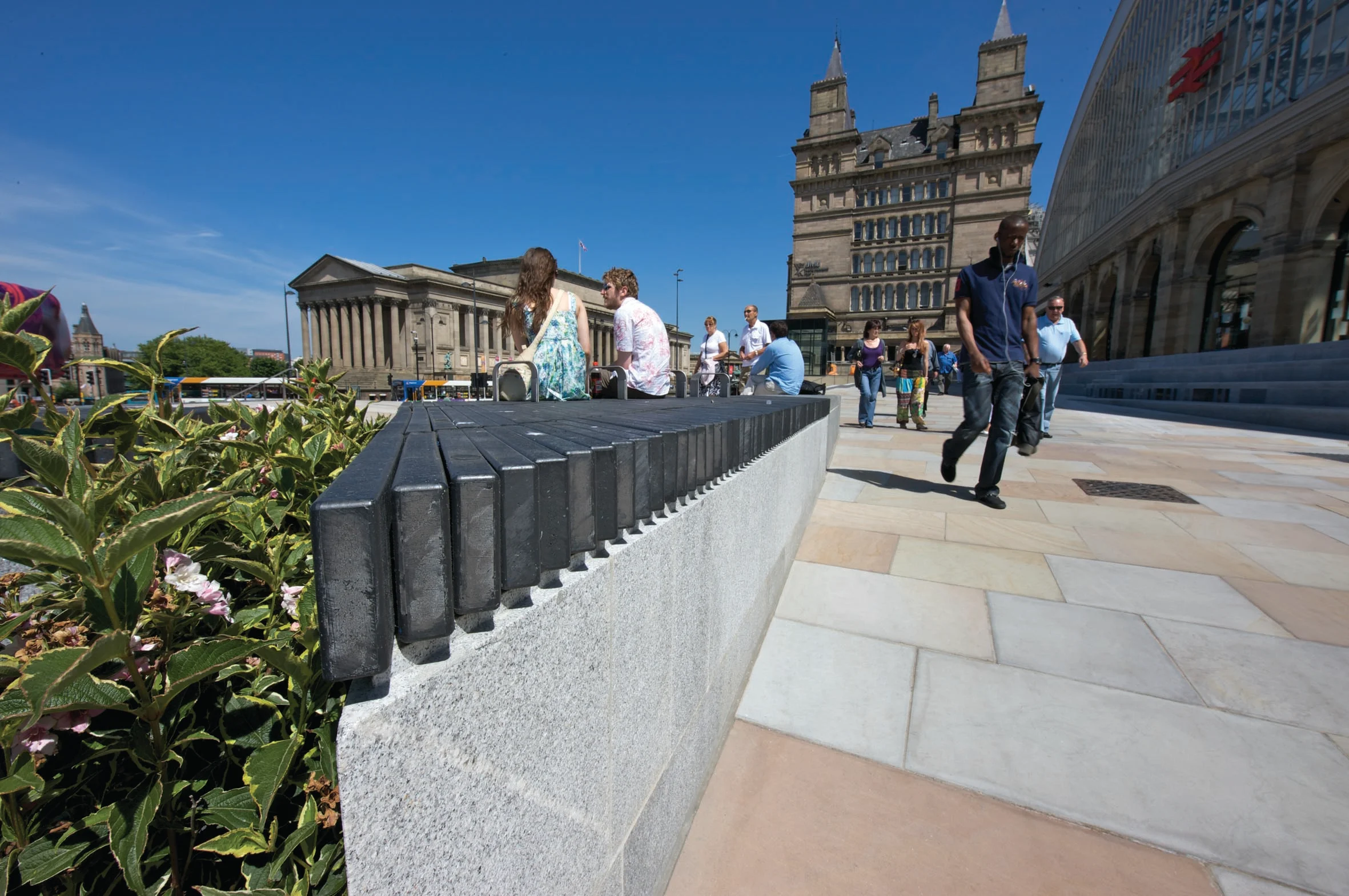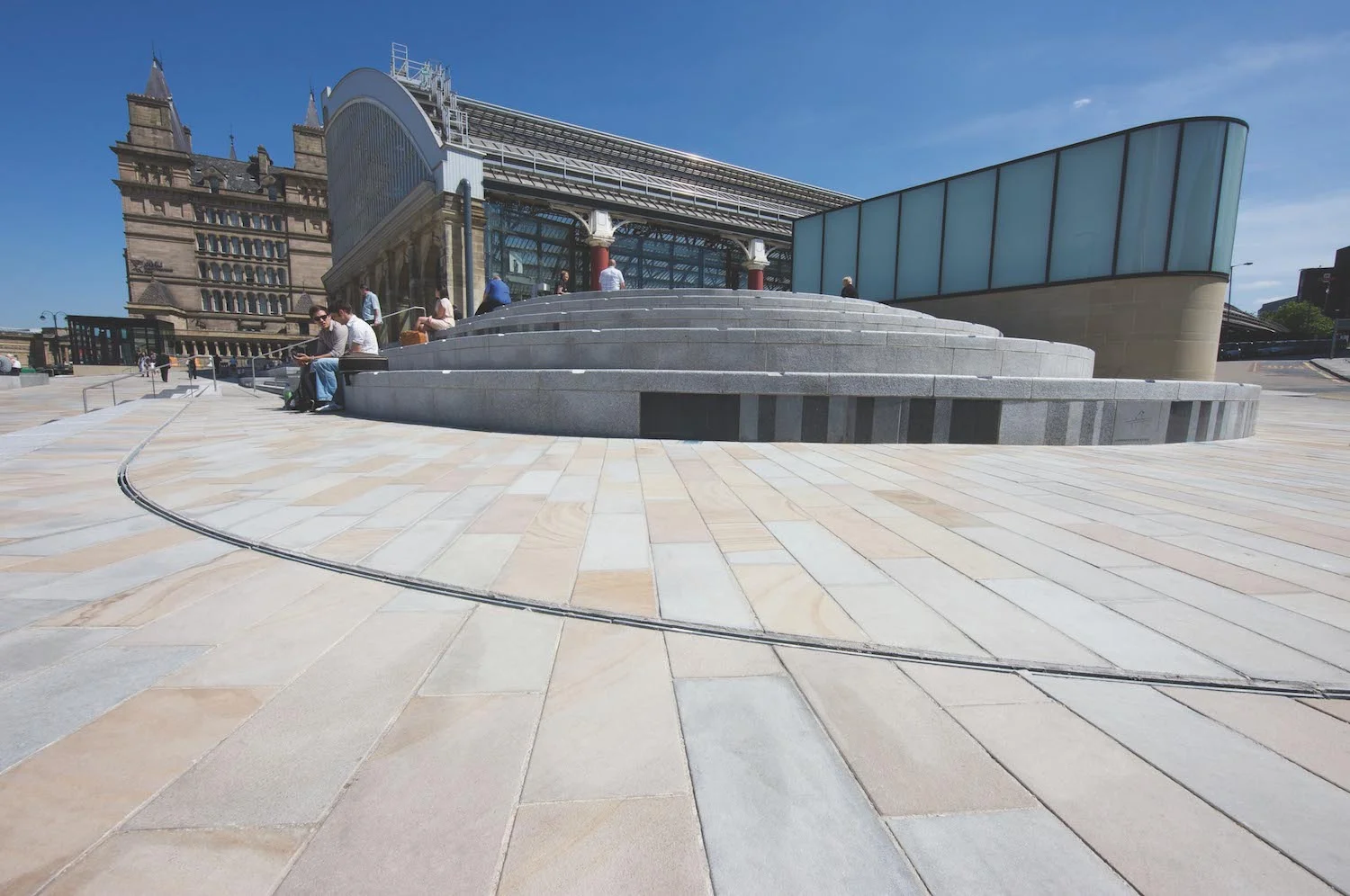 This project uses Two Tone paving to give the public forecourt a cool, contemporary feel. Its paving and setts are designed to handle heavy daily foot traffic, while their subtle contrast adds rhythm and interest to the busy urban setting. With its refined finish, the forecourt enhances the station’s civic presence and creates a welcoming, long-lasting gateway to the city.