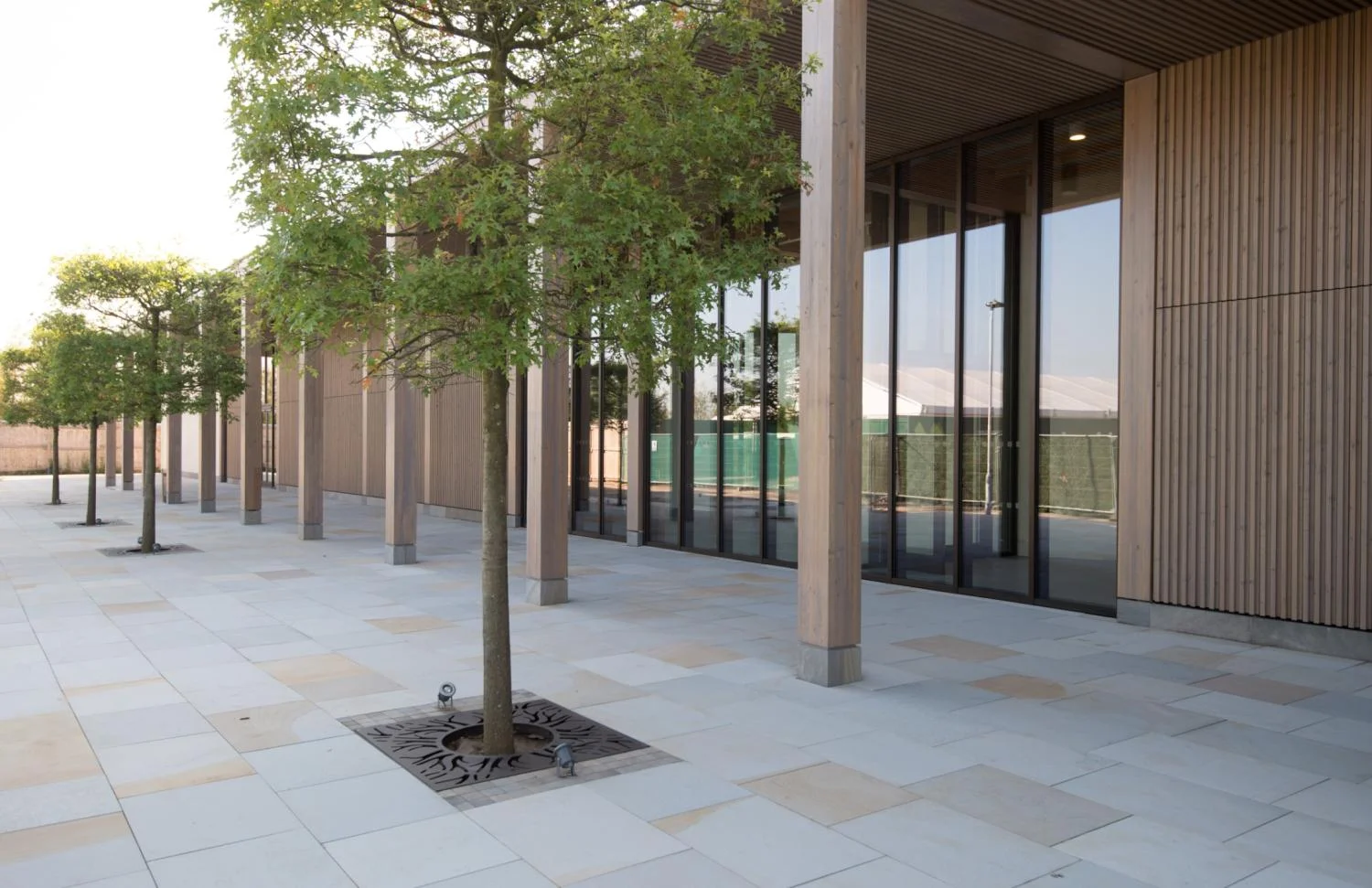 The vast open space at the centre of this historic campus has been thoughtfully made using a refined combination of setts, coping and benches. The natural tones of Arctic Mist and Silver Path bring a harmonious balance, enhancing circulation areas while adding warmth and character. Durable finishes ensure long-term functionality, allowing the renewed central zone to serve students and visitors with both practicality and understated elegance.